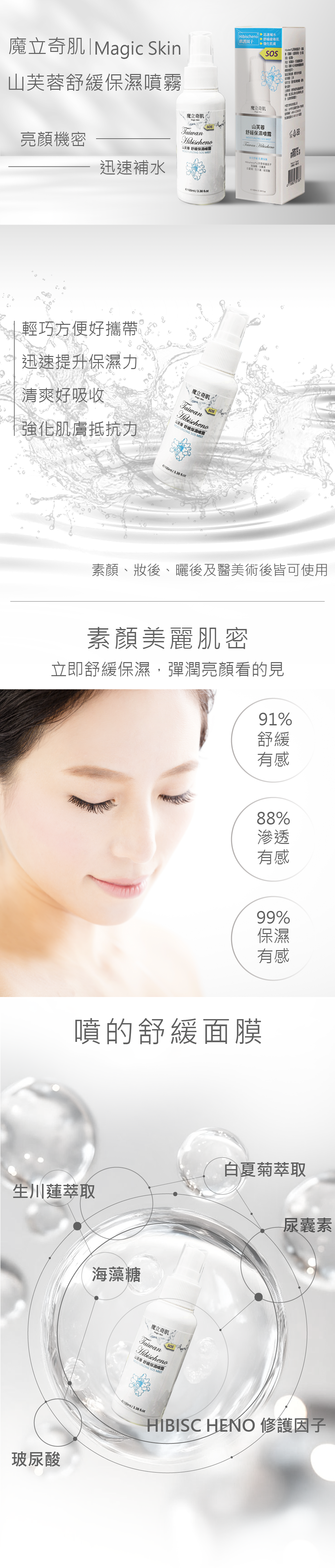 添加山Hibischeno®修護因子、玻尿酸、海藻糖、尿囊素、