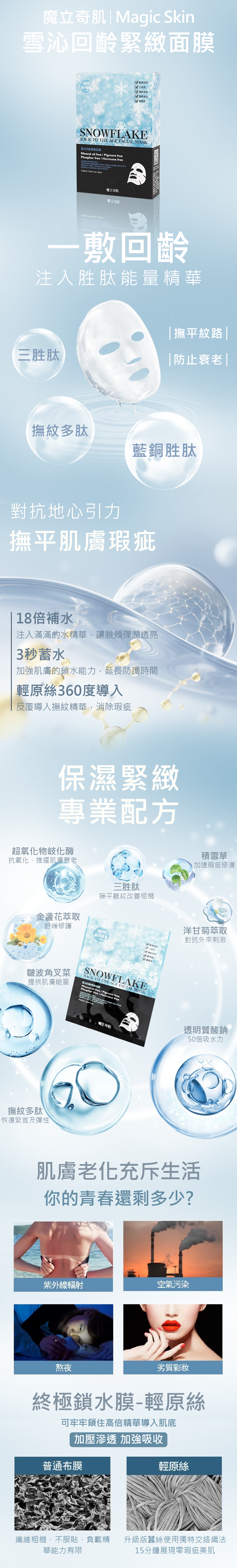 藍銅胜肽、三胜肽、撫紋多肽、膠原蛋白、積雪草萃取、玻尿酸鈉、